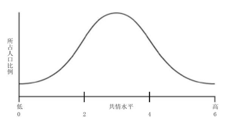 上面所阐述的共情腐蚀看起来更像是二值运算:要么有共情,要么无共情。但是作者以定量的观点进一步提出共情在人群中是变化分布(正态分布)的,这看起来使得共情腐蚀具有解释效力:我们所有人都位于一条共情光谱的某一点上。共情的多少决定了在这条光谱上的位置,共情的多少也被称为共情机制。共情有高有低,处于共情很低时的人在那一瞬间是不把其他人当做人类的(dehumanize),另外看到在光谱上的一个极端0值,它代表着“零度共情”(zero degree of empathy)。